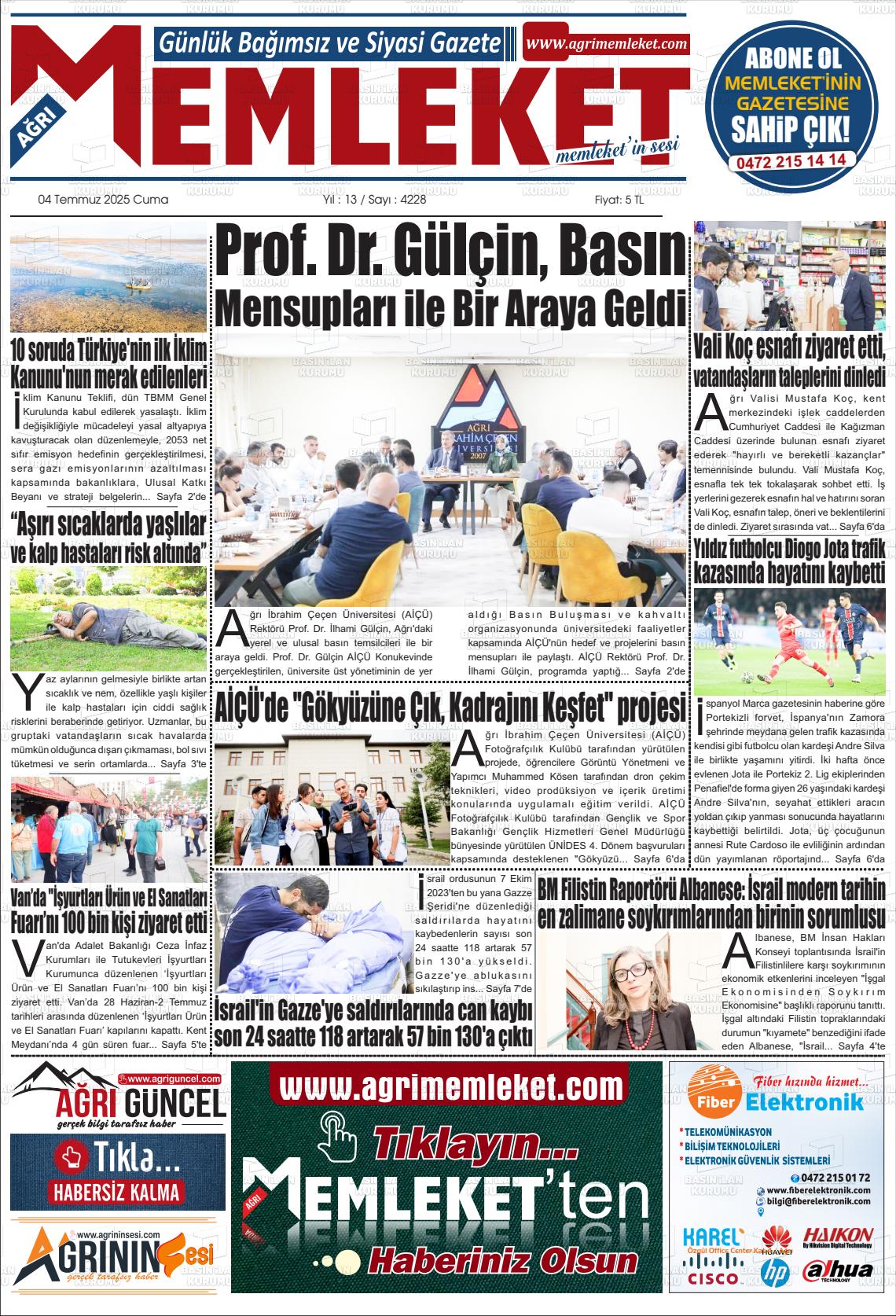 Ağrı Yerel Gazeteleri 15 Ekim 2025, Çarşamba Günü Manşeti